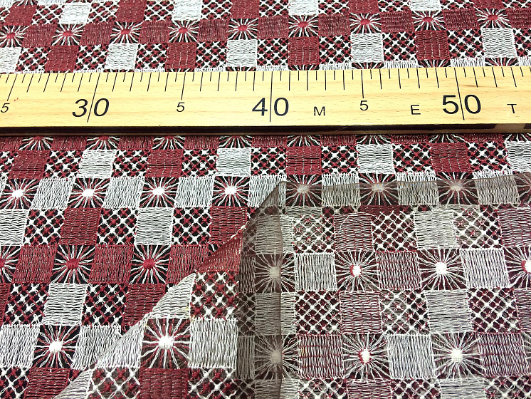 Вышивка на органзе (н) красно-белый орнамент - цена 6 200 ₽ У нас самые доступные цены на Нарядные ткани и вышивка в Москве, доставка по всей России - интернет магазин тканей Тессутидея. Артикул товара для заказа - 03-4774. Страна производства ткани – Италия. Ширина этого материала - 115. Состав - Хлопок 40% полиамид 60%. Наличие остатков на складе - 8.4 м