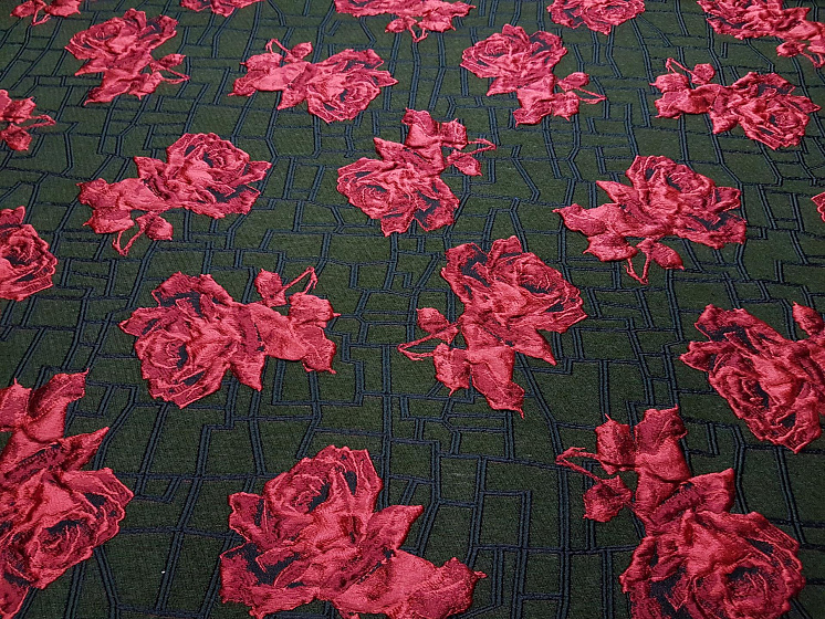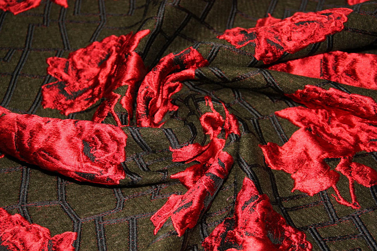 Жаккард матлассе (н) красные розы на геометрическом орнаменте - цена 8 050 ₽ У нас самые доступные цены на в Москве, доставка по всей России - интернет магазин тканей Тессутидея. Артикул товара для заказа - 03-3571. Страна производства ткани – Италия. Ширина этого материала - 140. Состав - Вискоза 20% акрил 35% полиамид 45%. Наличие остатков на складе - 3.4 м