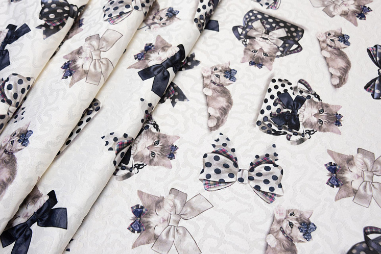 Жаккард (н) кошки и банты на айвори в стиле Monnalisa Арт. 03-6203