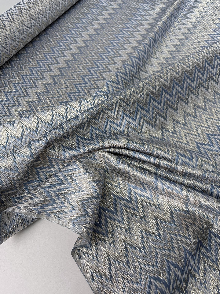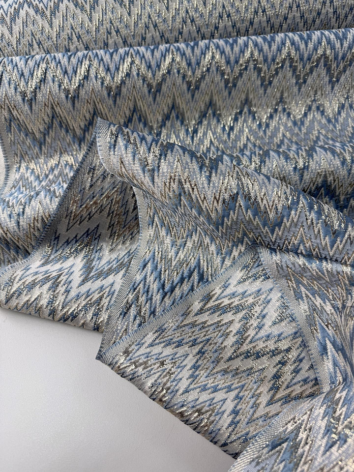 Жаккард с люрексом (н) молочно-голубой с золотом - цена 3 500 ₽ У нас самые доступные цены на Жаккард в Москве, доставка по всей России - интернет магазин тканей Тессутидея. Артикул товара для заказа - 03-7443. Страна производства ткани – Италия. Ширина этого материала - 150. Состав - Полиамид 65% люрекс 35%. Наличие остатков на складе - 6.5 м