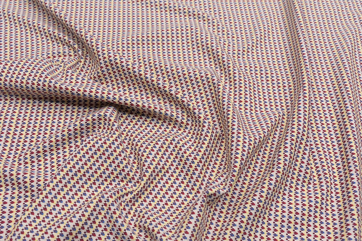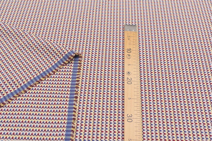 Жаккард стрейч (н) сине-бордовый геометрический орнамент на желтом - цена 2 800 ₽ У нас самые доступные цены на Жаккард в Москве, доставка по всей России - интернет магазин тканей Тессутидея. Артикул товара для заказа - 01-6955. Страна производства ткани – Италия. Ширина этого материала - 150. Состав - Хлопок 98% эластан 2%. Наличие остатков на складе - 8.6 м